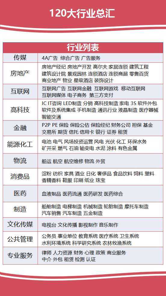 行业数量:可细分到120个子行业;