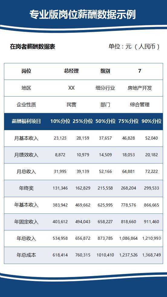年总收入:在岗者每年获得的税前(月总收入X年度月薪数量+年终奖)